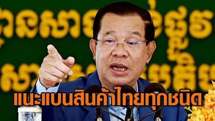 สมเด็จฮุน เซน ประกาศแบนสินค้าไทย อย่างเป็นทางการ หลังมีความตึงเครียดในความสัมพันธ์ไทย – กัมพูช อย่างไรก็ตาม ยังมีการใช้สินค้าไทยในกัมพูชาต่อไปอย่างกว้างขวาง.
